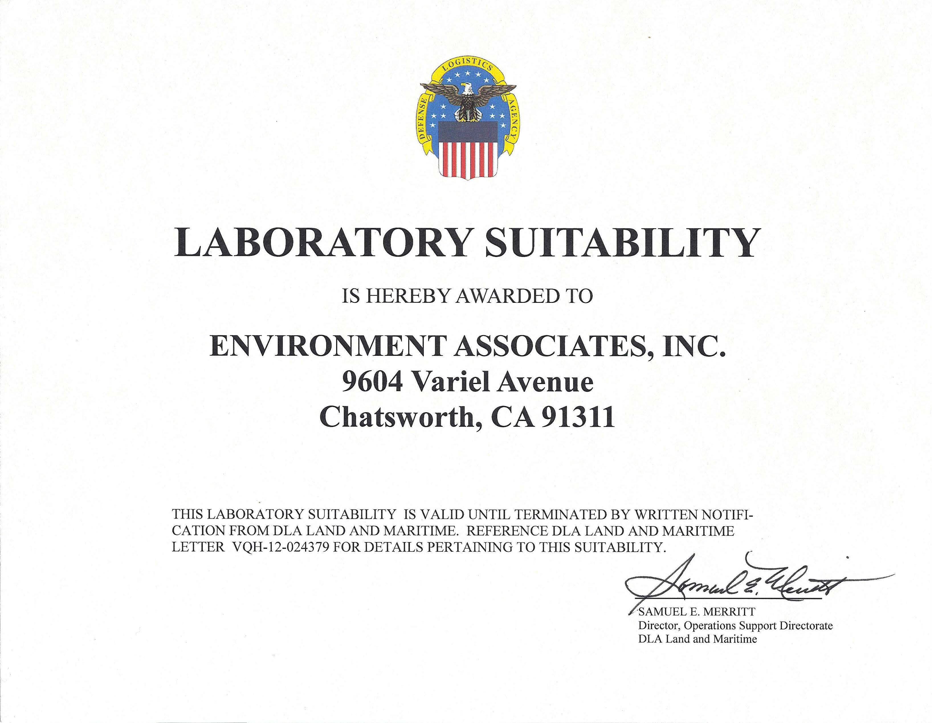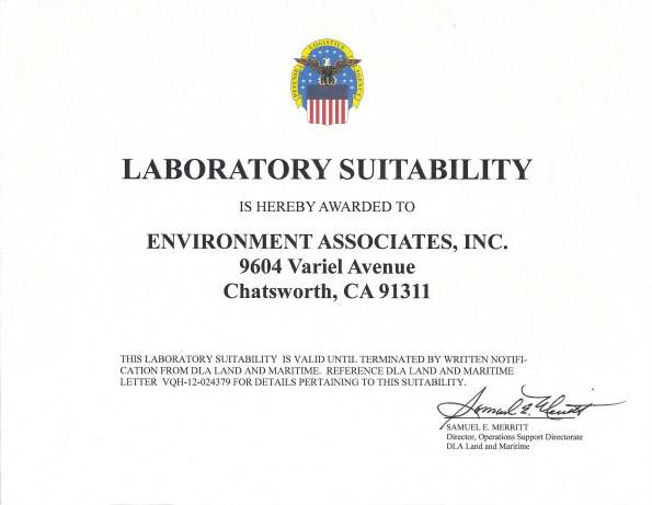 Environment Associates has earned Laboratory Suitability Status to Perform MIL-STD 202 by the Defense Logistics Agency
